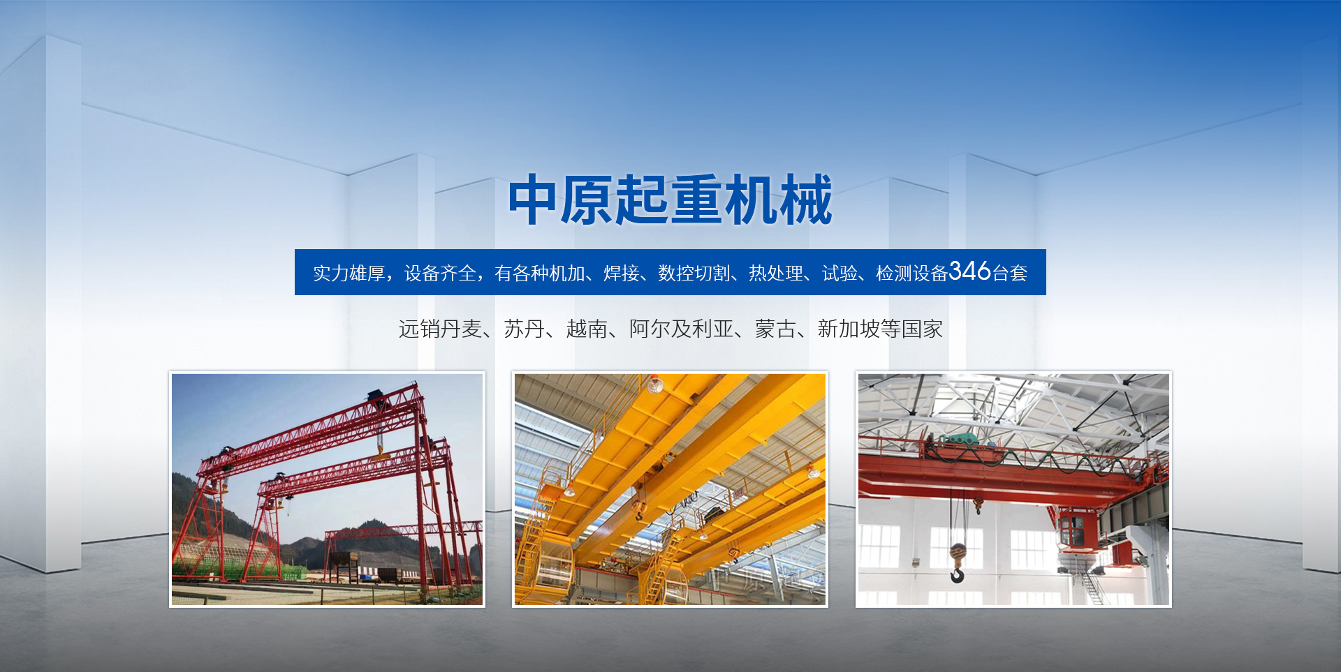 新鄉(xiāng)市中原起重機(jī)械有限公司成立于2000年,地處中原,輻射全國28個(gè)省市自治區(qū),設(shè)外埠經(jīng)銷處、辦事處268個(gè)。產(chǎn)品行銷工礦、建材、化工、冶金、電力、交通、鐵路、油田、港口等各個(gè)行業(yè)。遠(yuǎn)銷丹麥、蘇丹、越南、阿爾及利亞、蒙古、新加坡等國家。  公司實(shí)力雄厚,設(shè)備齊全,有各種機(jī)加、焊接、數(shù)控切割、熱處理、試驗(yàn)、檢測(cè)設(shè)備7臺(tái);有機(jī)加工、熱處理、單、雙梁橋門機(jī)生產(chǎn)、檢測(cè)、安裝等9個(gè)車間,研究中心、運(yùn)輸公司、安裝維修服務(wù)公司等機(jī)構(gòu),?  主要產(chǎn)品有:LD型1~20噸電動(dòng)單梁起重機(jī)系列產(chǎn)品;5~600噸通用橋式、門式、冶金、上旋轉(zhuǎn)下旋轉(zhuǎn)電磁吊、絕緣、抓斗、防爆起重機(jī)系列產(chǎn)品;LH3~100噸葫蘆雙梁系列產(chǎn)品;MH5~32噸葫蘆門式系列產(chǎn)品;0.5~40噸CD1、MD1鋼絲繩電葫蘆系列產(chǎn)品;HS1型0.5~20噸手動(dòng)葫蘆系列產(chǎn)品;0.5~10噸環(huán)鏈電動(dòng)葫蘆系列;0.5~40噸彎道電動(dòng)葫蘆系列產(chǎn)品;裝卸橋、造船門機(jī)、架橋機(jī)、鑄造吊和水電大噸位起重機(jī)系列產(chǎn)品。  公司建立了強(qiáng)有力的質(zhì)量保證體系和生產(chǎn)過程的質(zhì)量控制系統(tǒng),嚴(yán)格執(zhí)行國家設(shè)計(jì)、生產(chǎn)標(biāo)準(zhǔn),有嚴(yán)格的生產(chǎn)工藝過程和標(biāo)準(zhǔn),嚴(yán)格的檢驗(yàn)、檢測(cè)標(biāo)準(zhǔn)和手段。